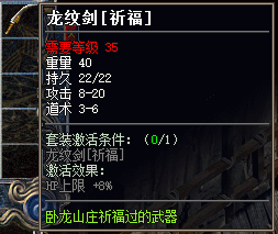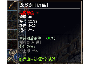 | 龙纹剑+金刚石*100+祝福油*20+金砖*1+屠龙凭证*1 | 卧龙山庄(踏云仙人) |